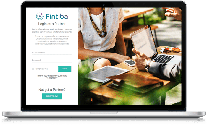 After we have accepted your application for our partner programme, you will receive an email which contains your individualised partner link. You can make this link available to your students by sending it to them individually, or you can also implement it on your website. Please make sure your students use this link when registering for a Fintiba solutions since otherwise the registration cannot be assigned to you.