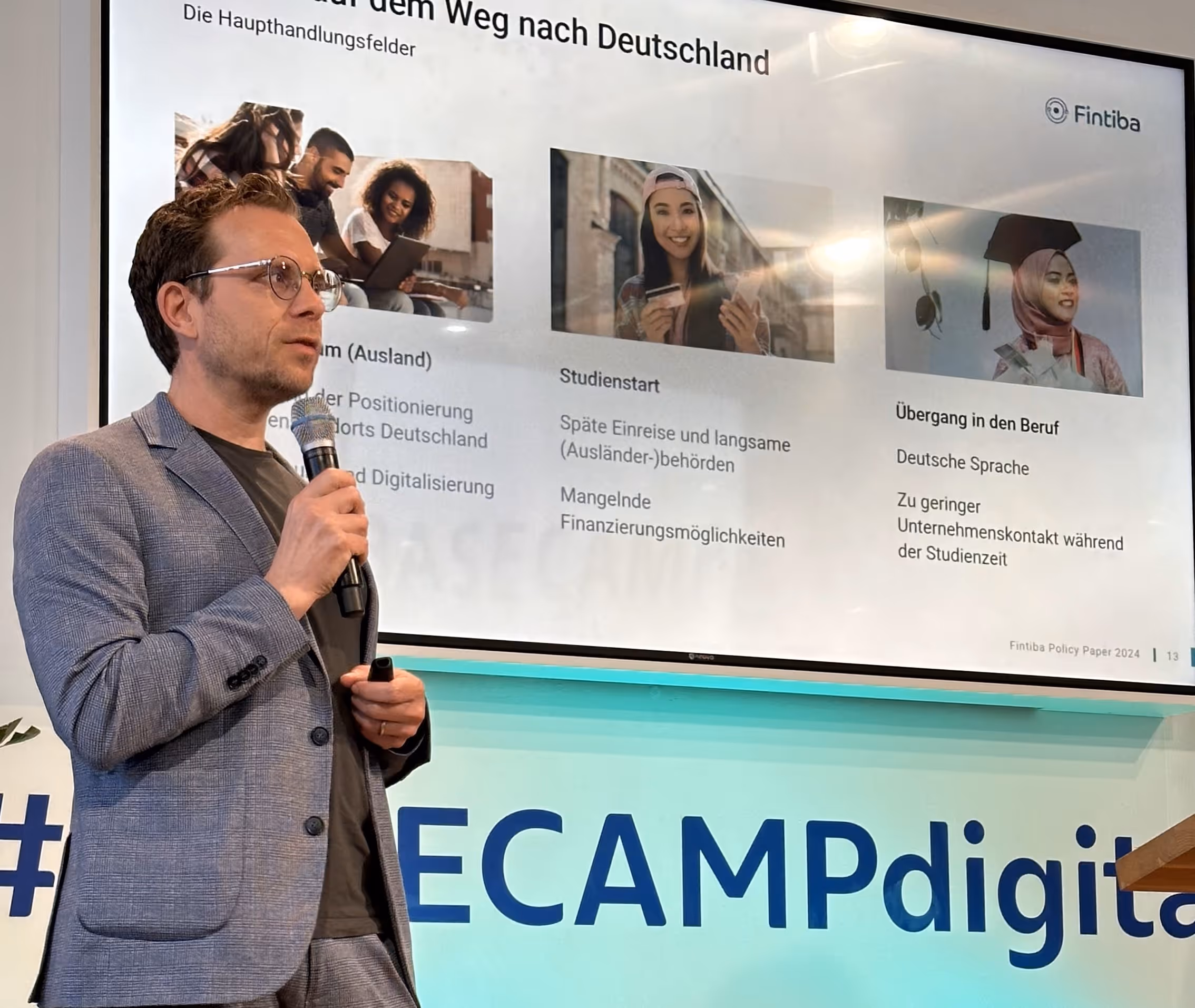 Fintiba’s COO, Jonas Marggraf, presented findings from the paper and also took part in the podium discussion. Another one of the panelists was Tuğçe Ormanci, a former Fintiba Scholarship winner, who is currently studying chemical engineering in Berlin. She represented and amplified the voices of many international students in Germany during the podium discussion.