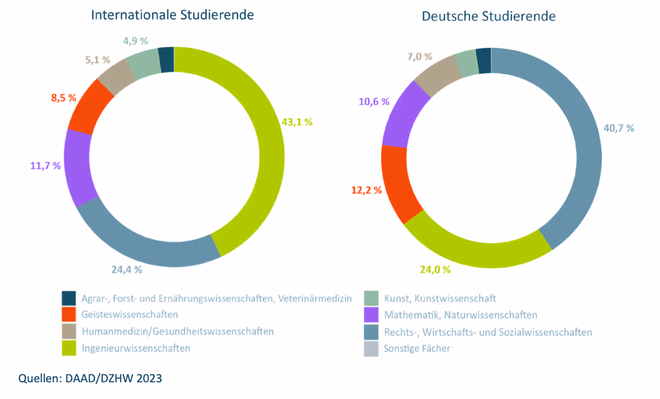 Germany has about 368,000 international students, making it one of the most attractive study abroad destinations in the world. Overtaking Canada, Australia, and New Zealand, Germany has the highest retention rate of international students in the world, at 45%. In addition, STEM subjects appear to be of a great interest to many international students, more than German students.